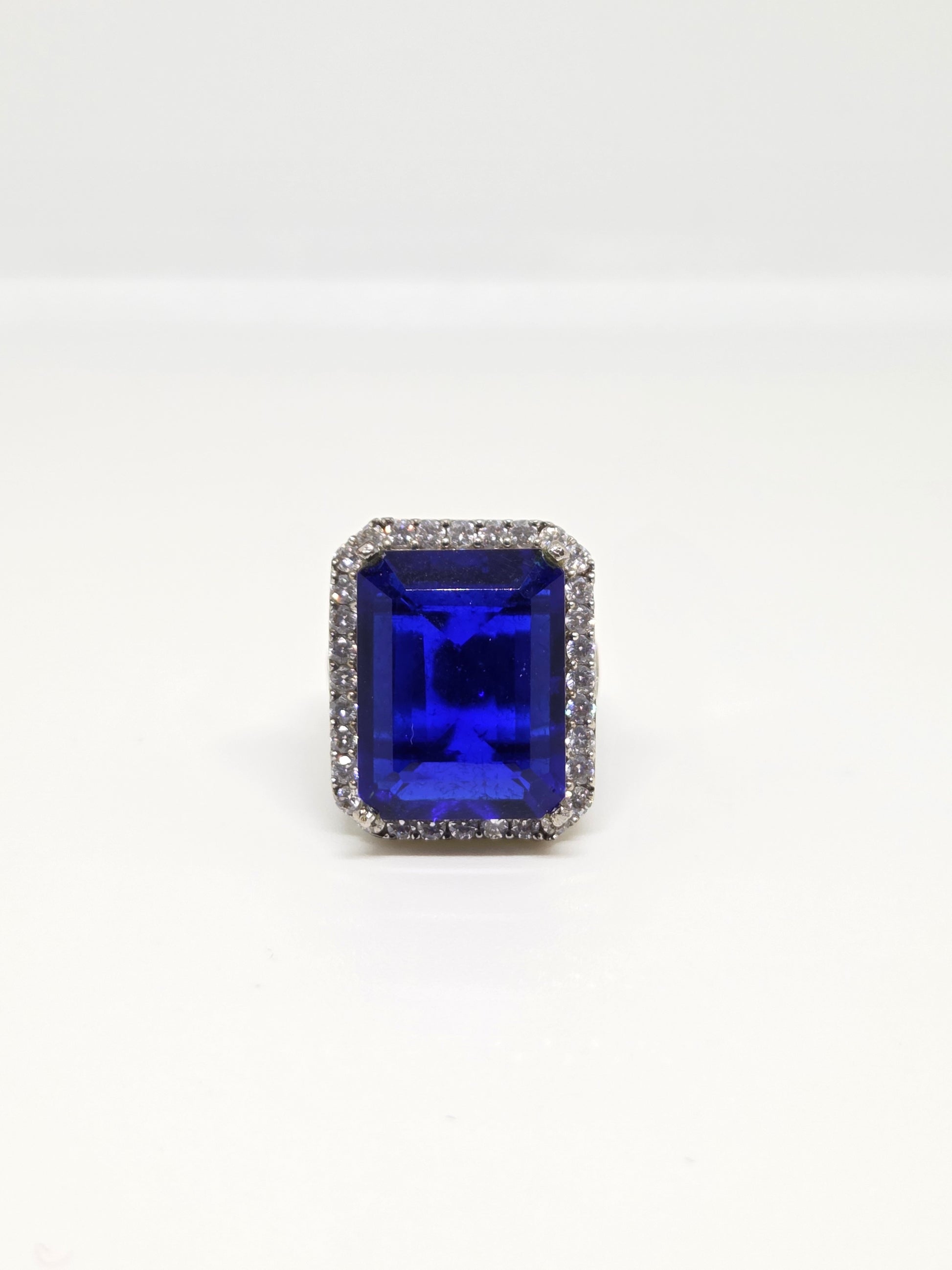 Blue Doublet Crystal Ring with Faux Diamond Accents
