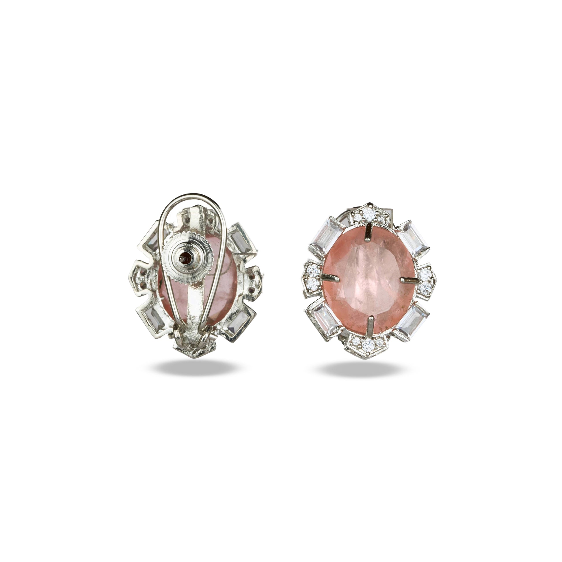 Soft blush pink stones take center stage in these charming halo studs, perfect for adding a touch of romance to your everyday look or elevating your special occasion style. These delicate studs offer just the right amount of sparkle without overwhelming your features. Whether you're dressing up or keeping it casual, these beauties are your go-to accessory for a feminine, radiant glow.