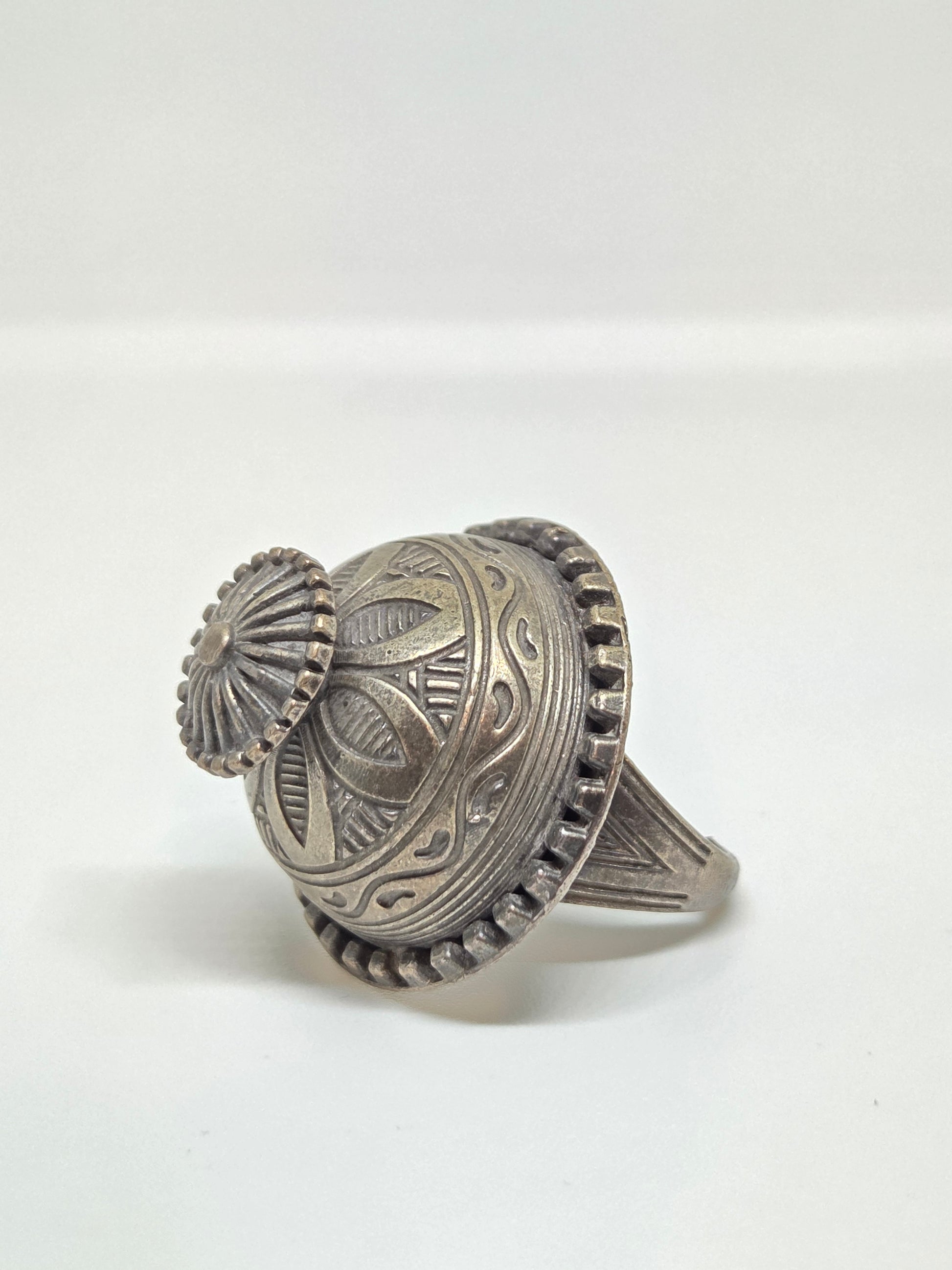 Carved Oxidised Dome Ring
