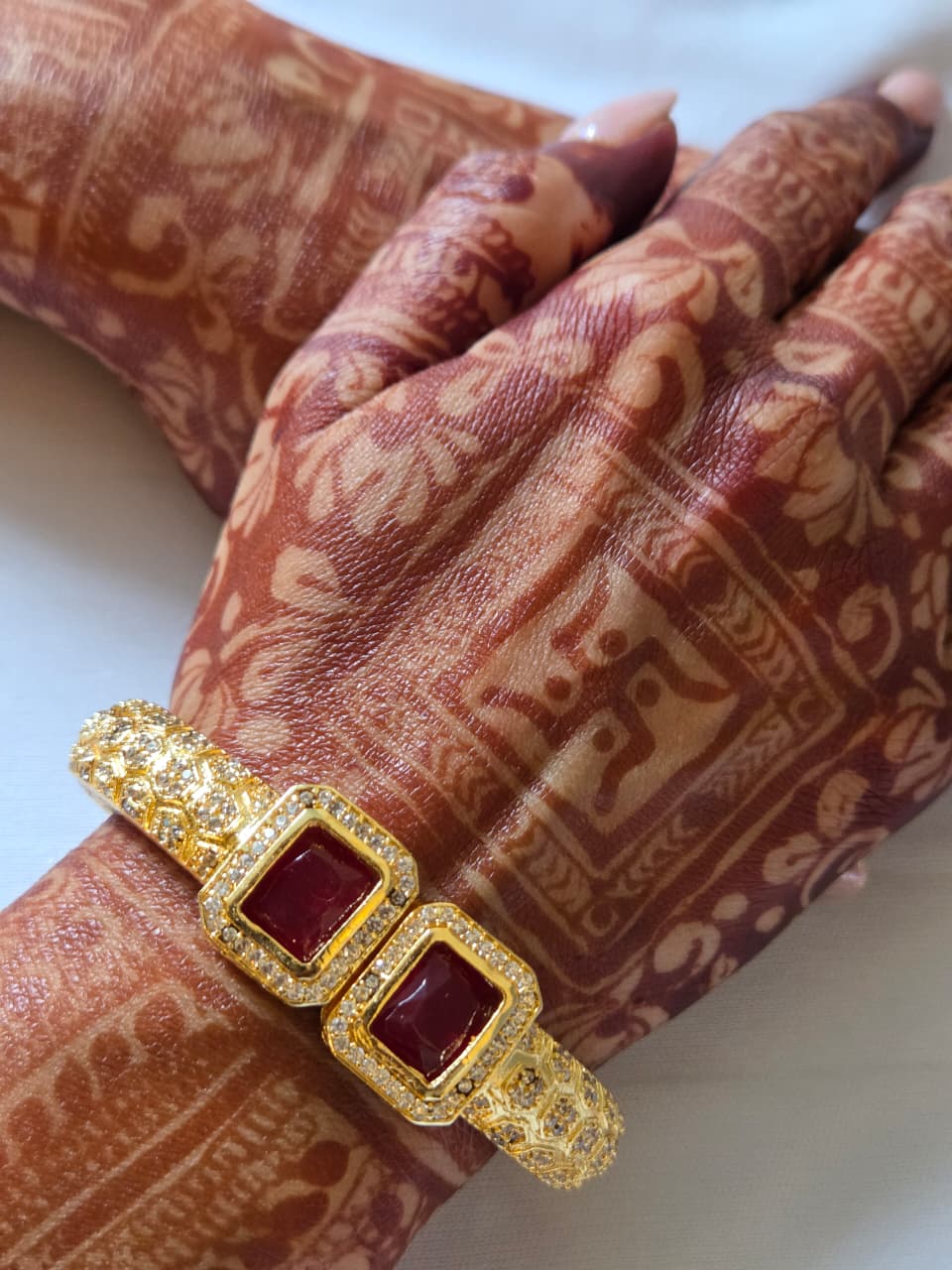 "Add a touch of playful elegance with our Black Finish Zircon Bracelet featuring dazzling Glass Rubies. This quirky accessory is perfect for any occasion and is sure to make a statement. Don't miss out on this unique piece!"