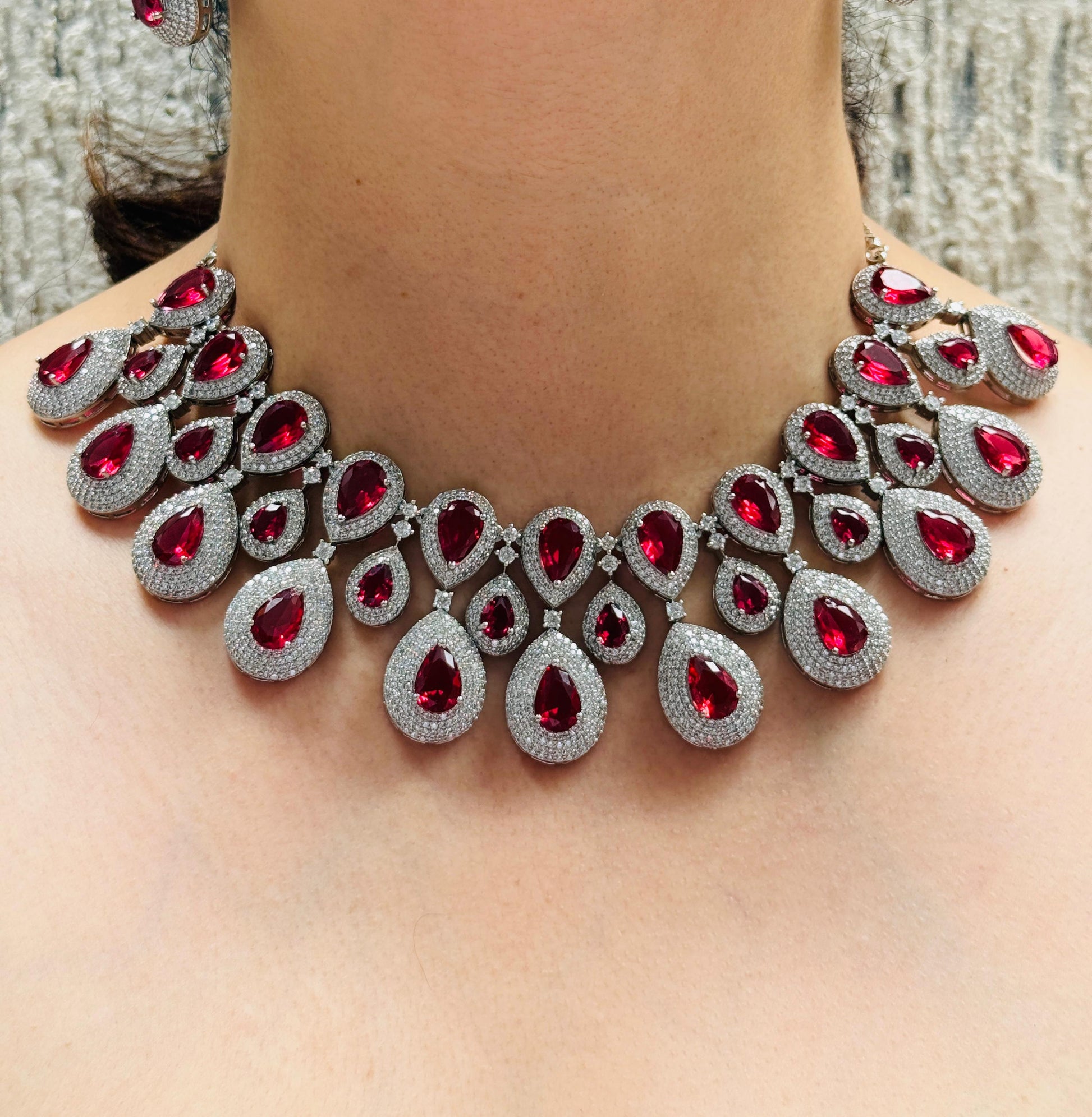 Unveil your inner royalty with this stunning Royal Red Zircon Studded Necklace Set! The perfect accessory to add a touch of class and sophistication to any ensemble. Dare to dazzle and make a statement with this regal set, fit for a queen!
