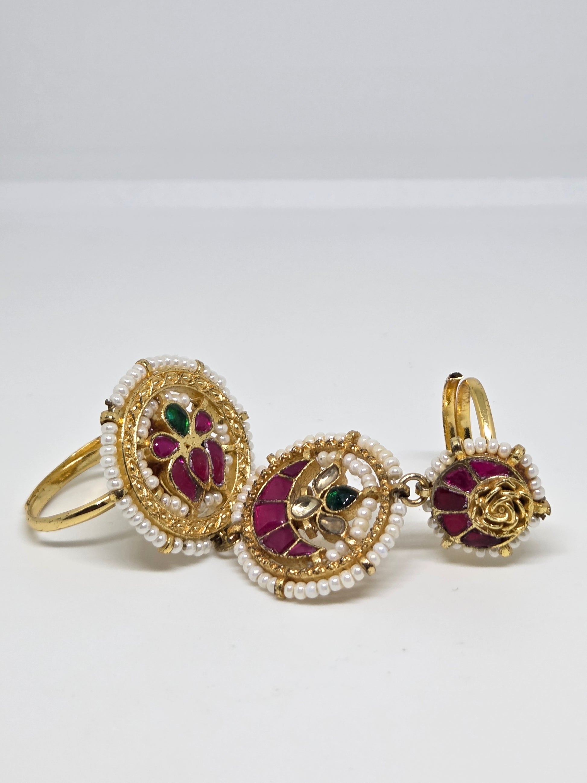Elevate your style with our Semi Precious Stone Studded Kundan Layered Ring. It has a stunning layered design with colorful and shimmering stones that will add a touch of glamour to any outfit. Handcrafted using traditional Kundan techniques, it is a must-have accessory for any occasion.