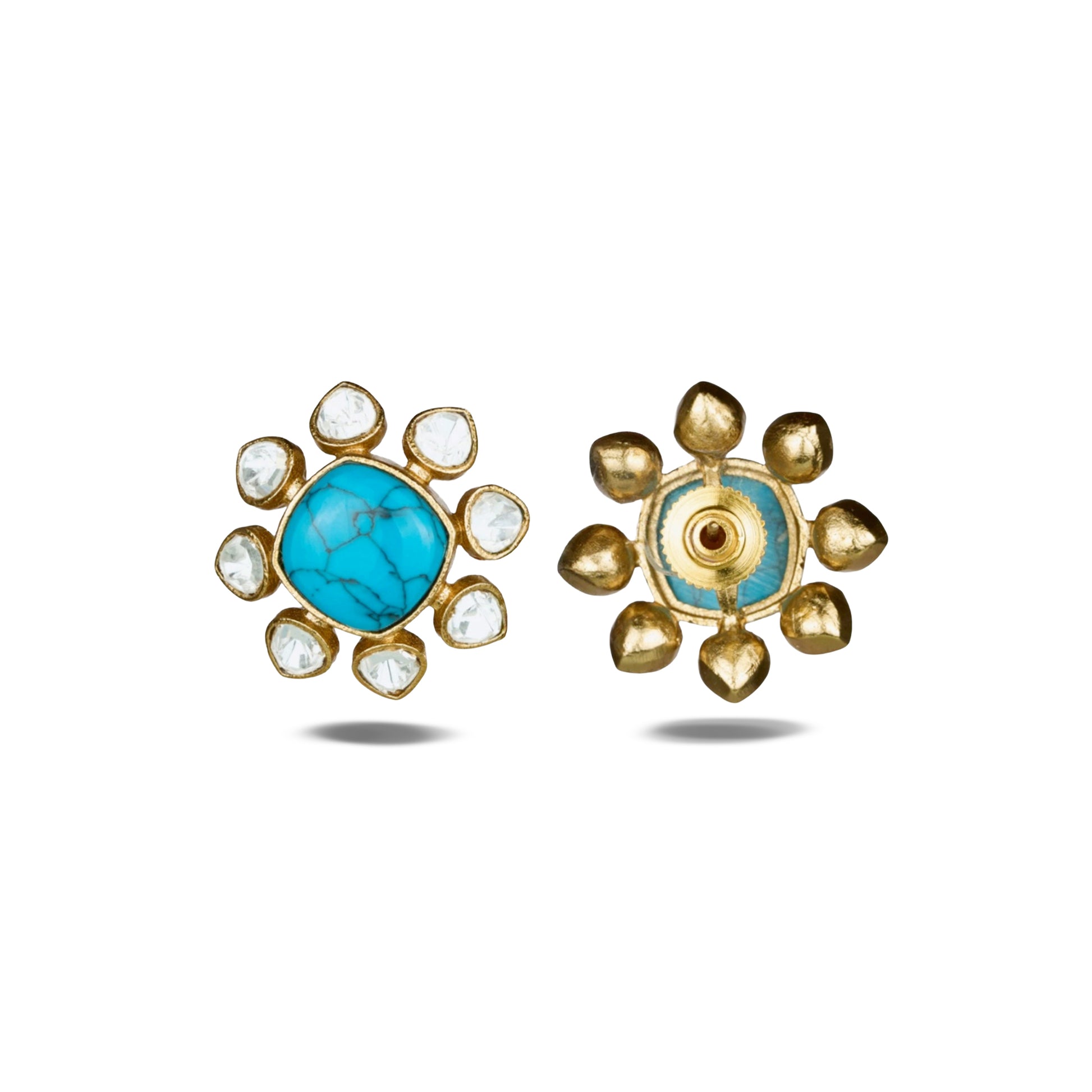 Turquoise Studs with Floral Polki Accents