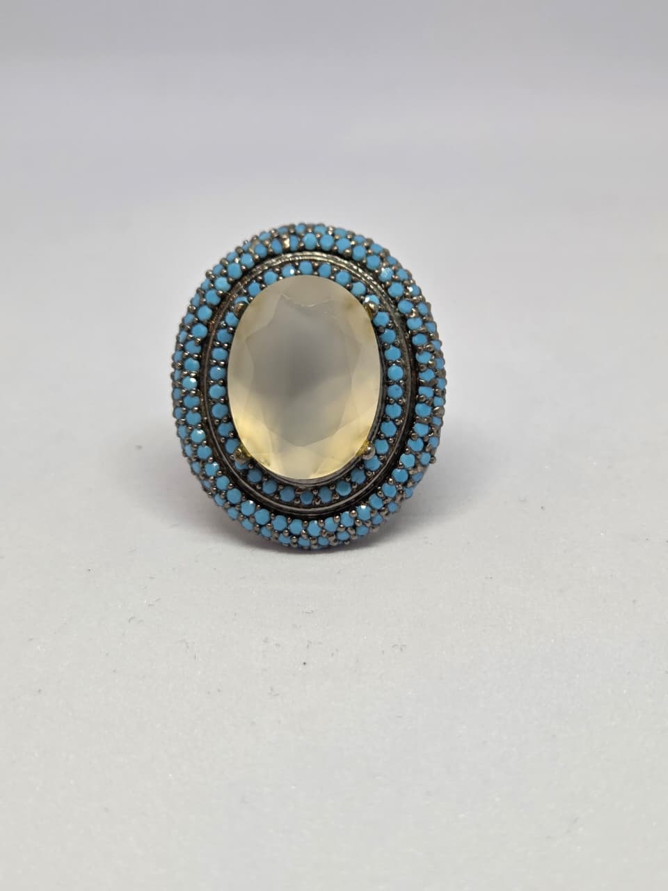 Zircon Double Halo Ring with Oval Center Stone